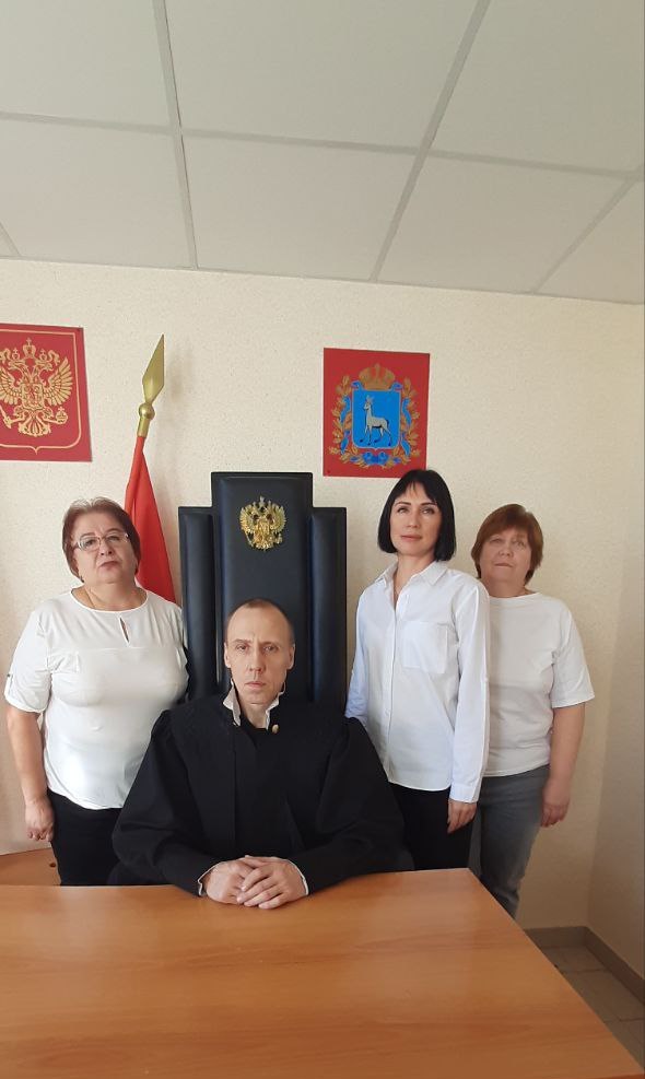У каждого из мировых судей есть свой аппарат – это люди, которые оказывают мировым судьям значительную помощь при отправлении правосудия. Мировой судья Мельникова Светлана Владимировна осуществляет руководство деятельностью аппарата мирового судьи судебного участка №70 судебного района г. Октябрьска Самарской области, куда входят: помощник мирового судьи Сафронова Анна Михайловна, осуществляющая полномочия в этой должности с 2002 года, имеющая благодарность от руководителя Службы мировых судей Самарской области за образцовое выполнение должностных обязанностей; секретарь судебного заседания Хорева Юлия Сергеевна, которая с 2018 года добросовестно трудится в этом коллективе; и работающая с 2009 года в должности секретаря мирового судьи Воробьева Светлана Викторовна. Выполнение ею должностных обязанностей оценивается Службой мировых судей Самарской области как образцовое в направленных в ее адрес благодарностях в 2022 и в 2023 г. Под руководством мирового судьи судебного участка №71 судебного района г.Октябрьска Самарской области Цветкова Дениса Владиславовича работают: помощник мирового судьи Беспалова Юлия Геннадьевна, осуществляющая полномочия в этой должности с 2005 года, имеющая благодарность от руководителя Службы мировых судей Самарской области за образцовое выполнение должностных обязанностей; секретарь судебного заседания Копина Вера Ивановна; секретарь мирового судьи Ивлева Валентина Николаевна. Вера Ивановна и Валентина Николаевна трудятся на данном судебном участке с самого начала его работы, с марта 2001 года. Их многолетний добросовестный труд и вклад в развитие мировой юстиции Самарской области отмечен благодарностями от губернатора Самарской области и от Самарской Губернской Думы. Своевременное рассмотрение большого количества дел - результат слаженной работы всего коллектива!