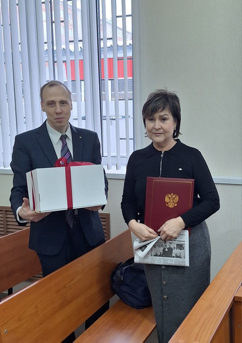 29.12.2025 в торжественной обстановке судьи и сотрудники Октябрьского городского суда Самарской области поздравили мировых судей и работников мировой юстиции С 25-летием со дня образования мировой юстиции! С момента своего образования институт мировых судей занял достойное место в судебной системе России, став одним из самых востребованных. И сегодня данный институт отвечает тем характеристикам, которые были присущи самым первым мировым судам: доступность правосудия, быстрое, законное и обоснованное разрешение споров и конфликтов, защита конституционных прав и свобод человека. Возрождение мировой юстиции в Российской Федерации – результат огромной совместной работы коллектива профессионалов. И сегодня мировые судьи и работники их аппаратов демонстрируют готовность к совершенствованию как собственных навыков, так и судебной системы в целом. Их работа заслуживает уважения и признания! Мировым судьям г.Октябрьска – Мельниковой Светлане Владимировне и Цветкову Денису Владиславовичу были вручены: памятная книга об истории становления мировой юстиции в Российской Федерации и непосредственно в г.Октябрьске Самарской области, выпуск газеты «Октябрьское время» от 26.12.2025 с опубликованной в нем статьей, посвященной мировым судьям г.Октябрьска и работникам их аппаратов; юбилейный торт.