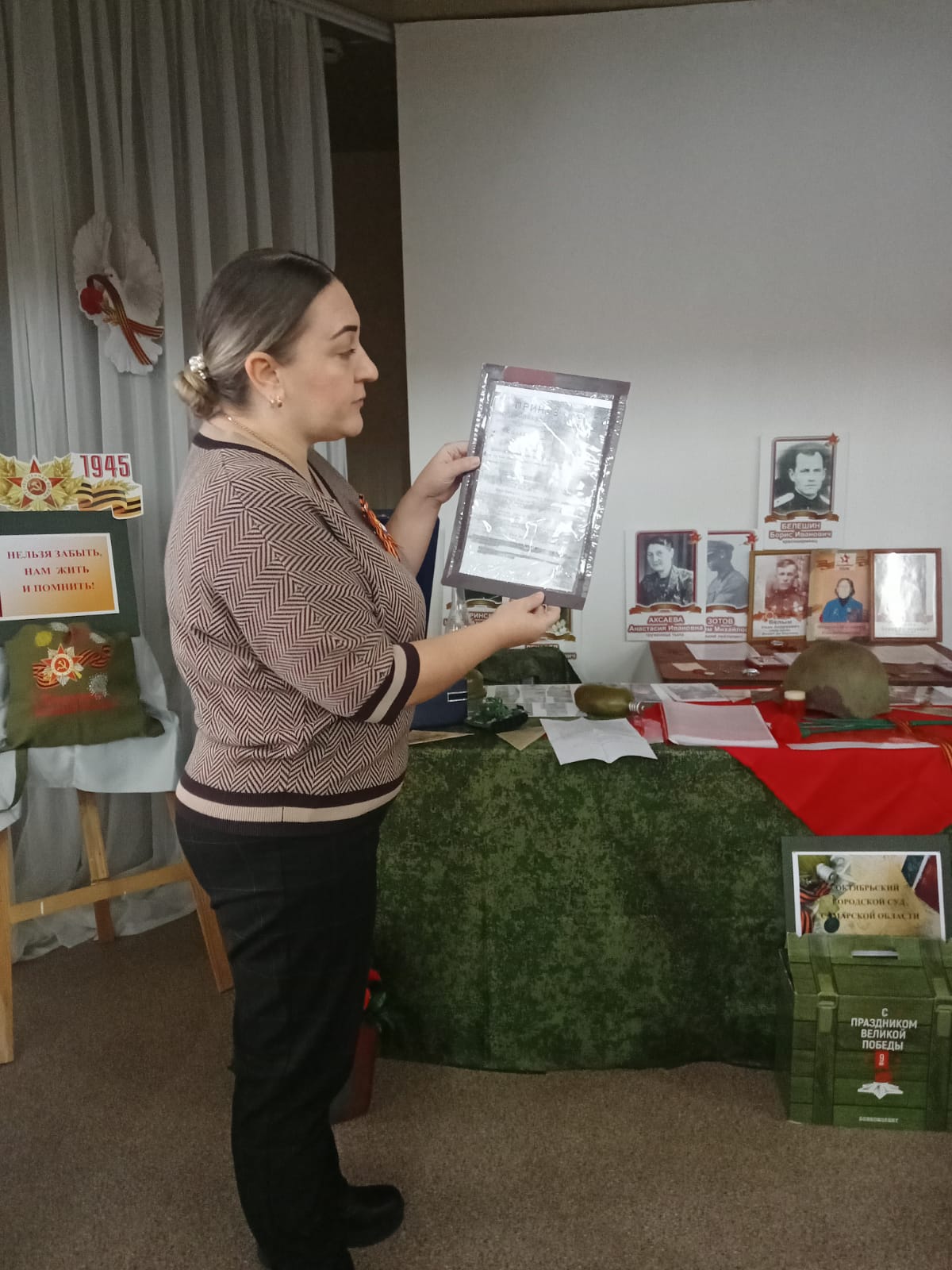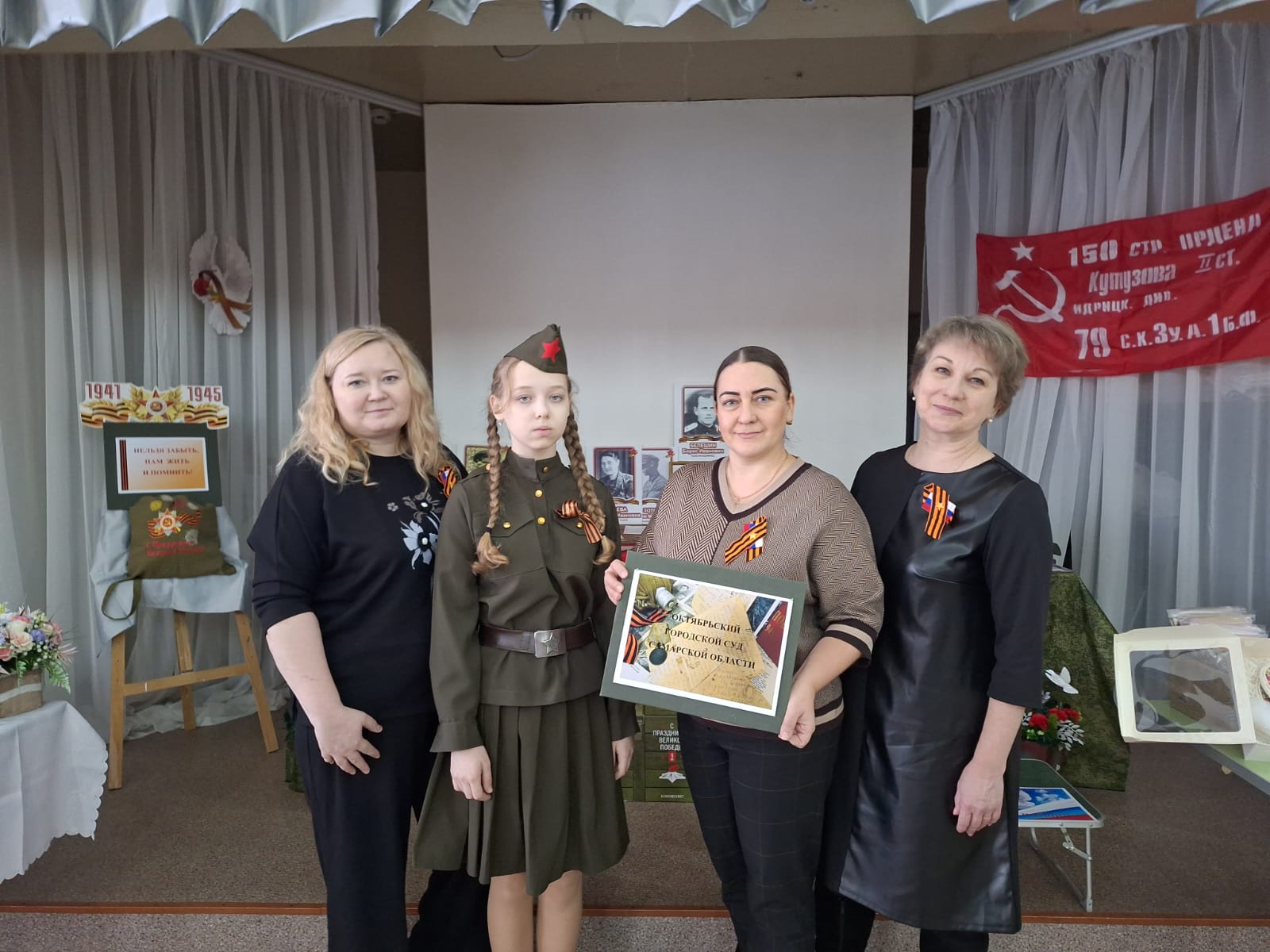 Приближаем Великий юбилей 17 декабря 2024 в ДК «Приморские зори» поселка Приморский Ставропольского района для девяти судов Самарской области – Автозаводского, Центрального, Ставропольского и Комсомольского районных судов г.Тольятти, Жигулевского городского суда, Сызранского городского суда и Сызранского районного суда, Октябрьского городского суда и Шигонского районного суда прошел 1 этап третьего фестиваля самодеятельного художественного народного творчества «Салют Победы», посвященного 80-летию Победы в Великой Отечественной войне 1941-1945 годов работников судебной системы Самарской области. Октябрьский городской суд Самарской области представил жюри две выставки. Первая - «Нельзя забыть, нам жить и помнить!» посвящена ветеранам Великой Отечественной войны, труженикам тыла из семей сотрудников суда и содержит в себе фотографии, архивные документы, ордена, медали и иные их личные вещи. Во второй выставке «Фантазия Души» представлены изделия ручной работы по направлению «креативное рукоделие» старшего специалиста 2-го разряда (архивариуса) суда Золотовой Натальи Владимировны. В номинации «Художественное слово» со стихотворением К.Симонова «Ты помнишь, Алеша, дороги Смоленщины» выступила Софья Ганн (12 лет) – дочь секретаря судебного заседания Анастасии Юрьевны Ганн. Кроме того, членам жюри был передан диск с выступлением участников, представляющих Октябрьский городской суд в номинации «Инструментальное исполнение». Это Анастасия и Арсений Ишутовы (15 лет), выступающие дуэтом «Созвучие», - выпускники детской школы искусств №1 г.о.Октябрьск по классу гитары, внуки судьи в почетной отставке Корноуховой Евгении Владимировны. Дуэт исполнил музыкальное произведение «Журавли» (музыка Я.Френкеля, слова Р.Гамзатова). Сотрудниками суда проведена патриотическая акция «Мы помним!», в рамках которой всем посетителям выставки были вручены памятные значки, изготовленные Натальей Владимировной Золотовой, олицетворяющие память граждан России о героическом подвиге своих соотечественников -всех тех, кто ковал Победу в Великой Отечественной войне. По итогам прошедшего этапа огркомитет областного Фестиваля народного творчества «Салют Победы» пригласит участников на заключительный гала-концерт и на выставку декоративно-прикладного творчества «Золотые руки», которые состоятся в конце апреля 2025 года в окружном Доме офицеров г.Самара. Пресс-секретарь Октябрьского городского суда Самарской области В.В. Пузанова